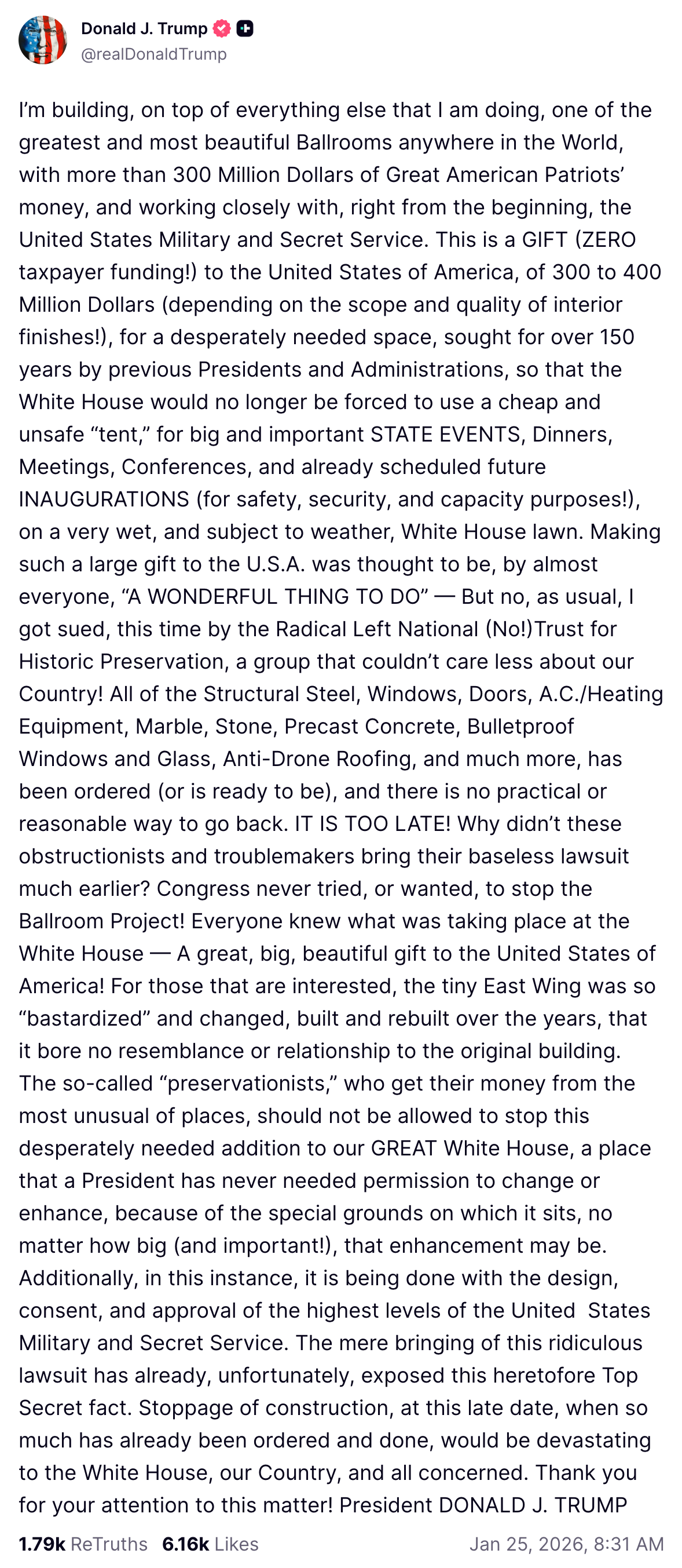 And what’s the President doing this morning? Ranting about his ballroom.