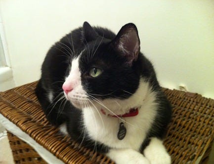 I was blissed on pain meds Sunday night (recuperating from surgery), and Cecil suddenly ran screaming (as only cats can) out the open front door and attacked a stray cat that had been hanging around. They were locked in a death struggle as they slid near the edge of the 2nd floor ledge. I couldn't grab them (because…