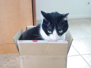 I taught Cecil how to use the microwave. But he keeps putting CANS of cat food in there. I don't how many times I have to tell him -- NO METAL IN THE MICROWAVE!