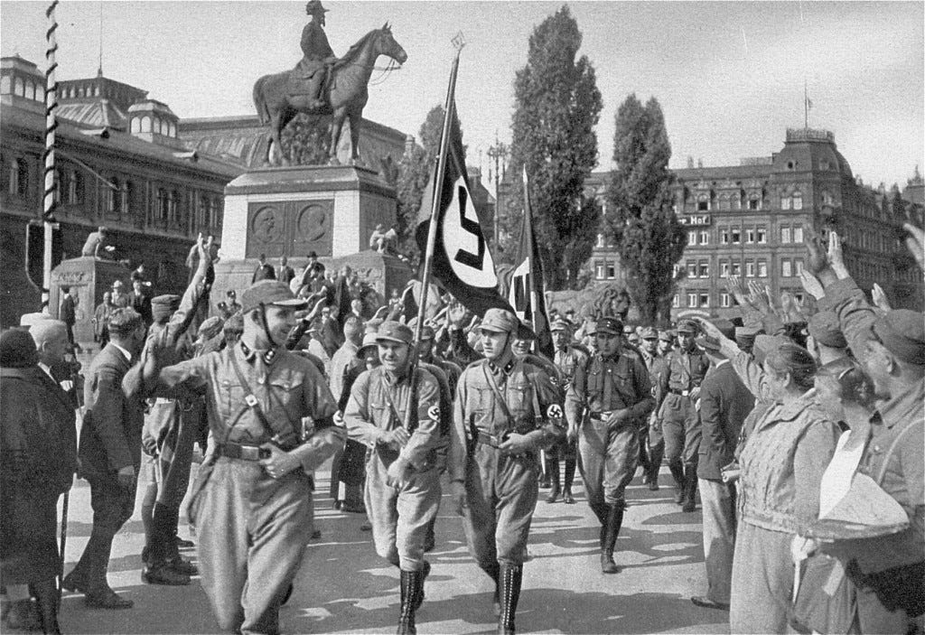 The Nazi state then wrapped itself in Wessel’s memory. His song was played constantly. Germans were required to give the Nazi salute whenever it was sung. Schools drilled it into children. Mocking it was treated as treason. People who joked about Wessel or parodied the anthem were arrested, beaten, or even sent to camps. The name itself became sacred—invoked at rallies, etched into monuments, and used as a recruiting tool for the SA.
