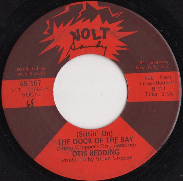 One of my earliest musical memories is watching a 45 rpm record spin—Otis Redding’s “(Sittin’ On) The Dock of the Bay.” I was a little kid, sitting with my mom (RIP), and had no idea what life would throw at me. The whistling part still makes me miss her.