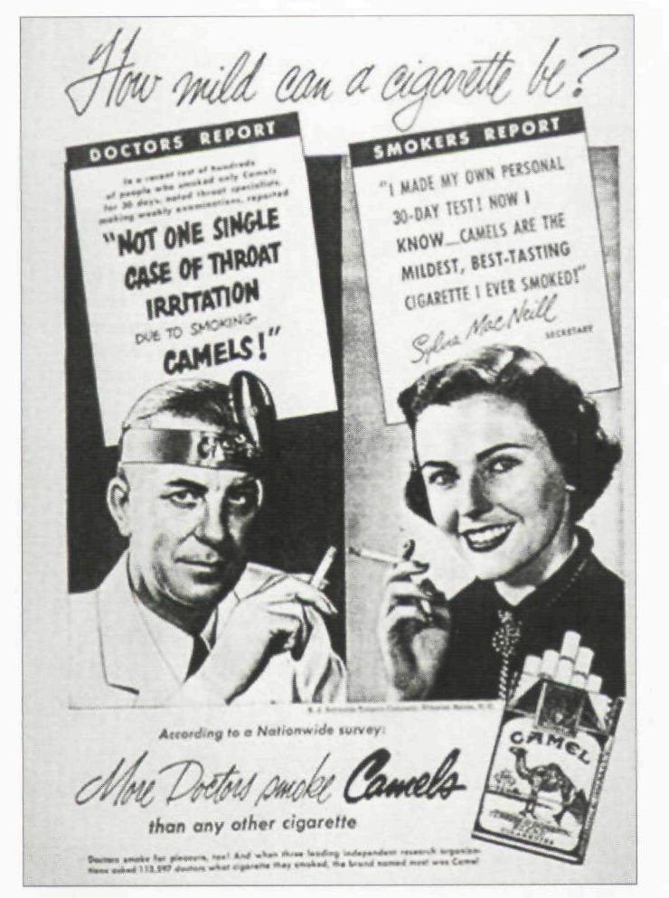 There was a time when cigarette companies insisted their product wasn’t addictive. They ran ads saying doctors smoked. Their brand, of course.