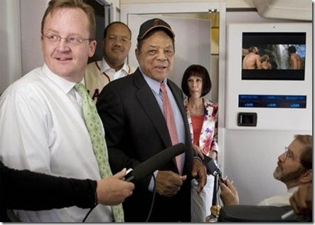 President Obama and crew on Air Force One watching a video of barechested men? Proof that Obama is not only a secret commie/socialist/nazi/eater of white christian baby hearts, but also, gasp, GAY? Was he really watching soft core gay porn with Willie Mays and Robert Gibbs, or was it something else? Right wing heads explode again!