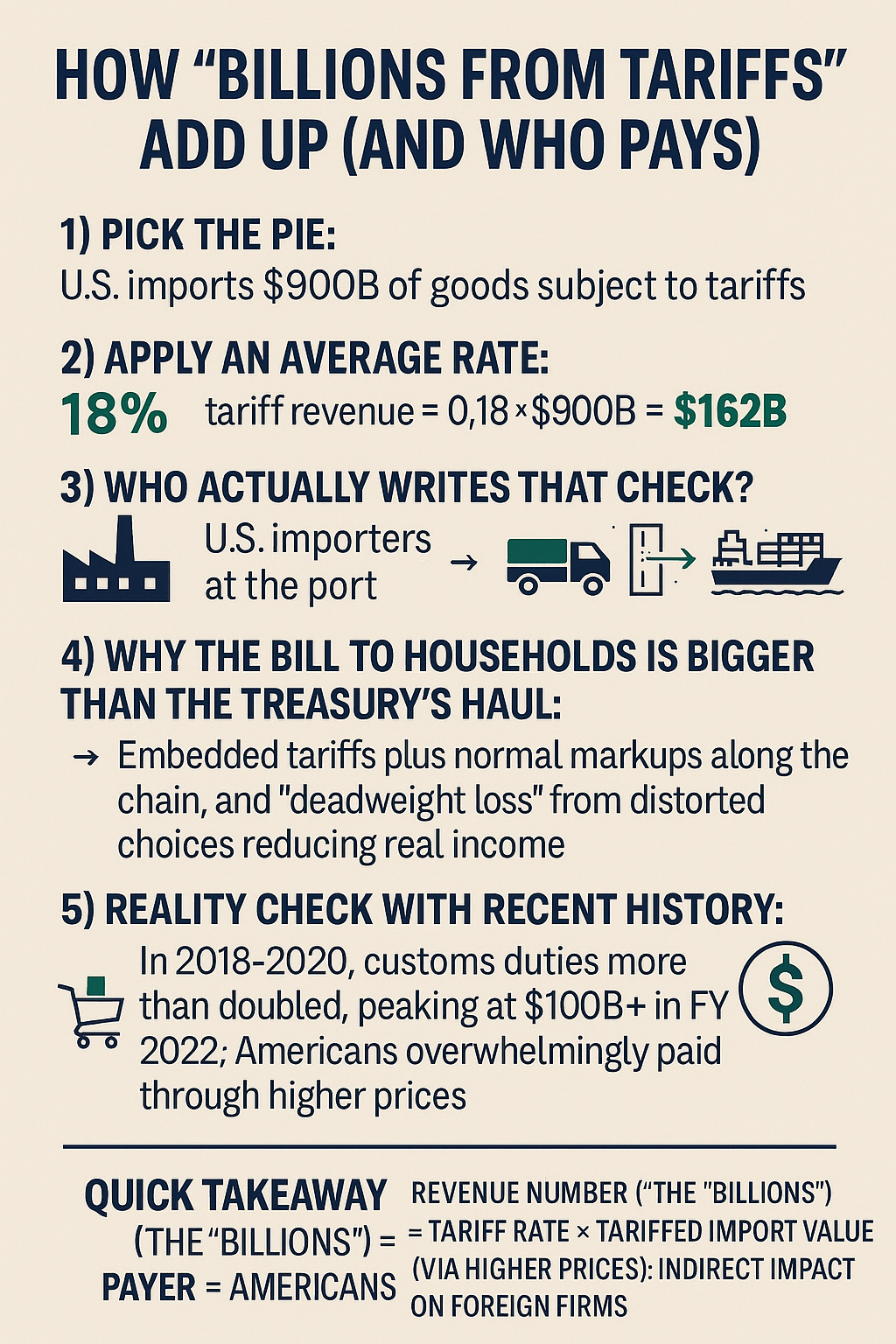 The revenue number (the “billions”) = tariff rate × tariffed import value.